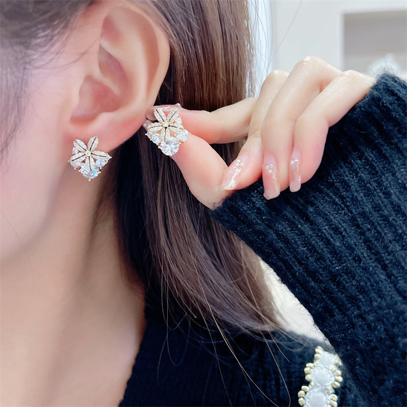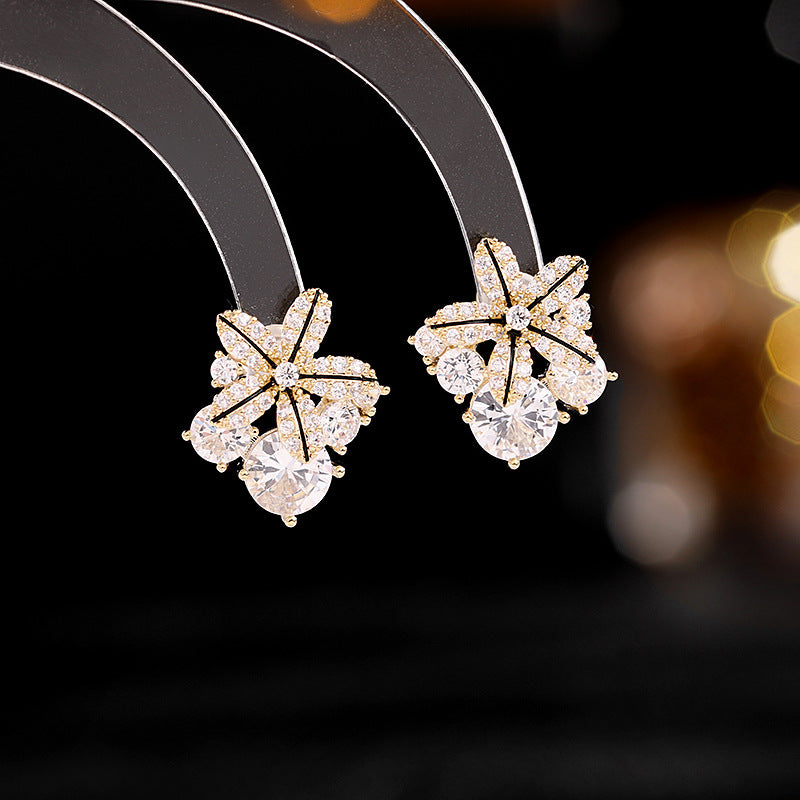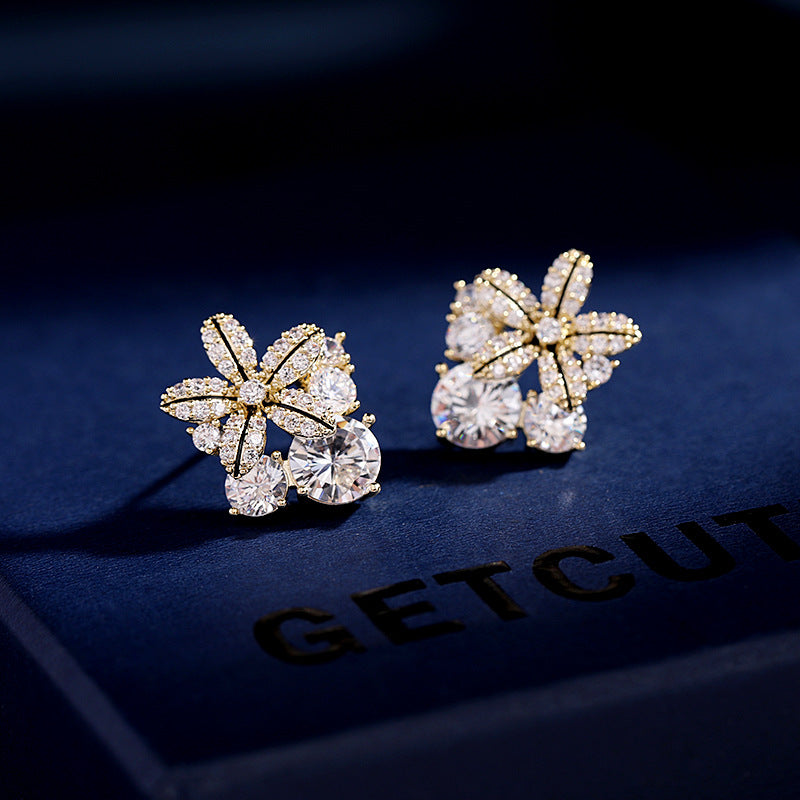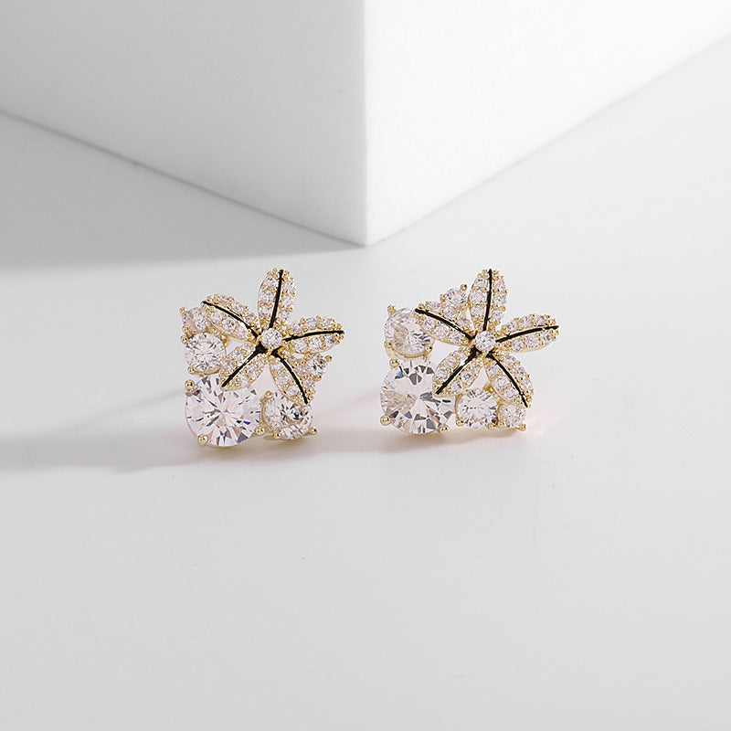 Material: 925 Silver, AAA zirconia Size: 2.3 × 3.4 cm Weight: 3.8g Craftsmanship: Inlaid zirconia Colors: Gold-colored white zirconia